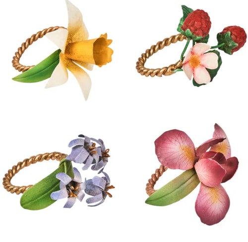 Juliska Meadow Walk Floral Napkin Ring Assorted Set/4