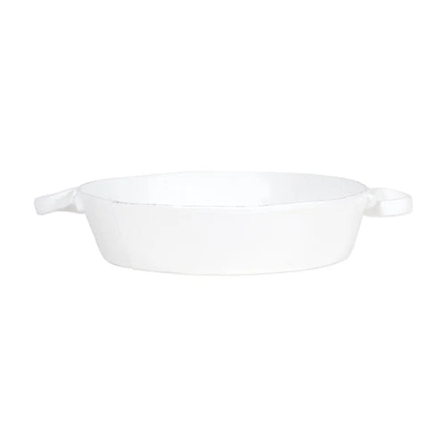 Vietri Lastra White Handled Round Baker